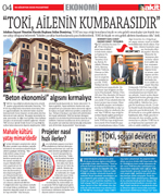 "TOKİ, ailenin kumbarasıdır" Yeni Akit Gazetesi / 10.08.2020 Adahan İnşaat Yönetim Kurulu Başkanı Selim Demirtaş, TOKİ'nin inşa ettiği konutların küçük ve orta gelirli vatandaşlar için büyük öneme sahip olduğunu belirterek "Eskiden çocuklar kumbaralarında para biriktirirlerdi. TOKİ de küçük ve orta gelirli ailelerin kumbarası oldu" dedi. 2007 yılından bu yana TOKİ'nin birçok projesini inşa ettiklerini belirterek sözlerine başlayan Selim Demirtaş, "İstanbul, Konya, Bartın, Kırıkkale, Manisa, Ordu, Aksaray, Burdur Trabzon, Giresun ve Adapazarı'nda konut ve sosyal donatı projeleri inşa ettik. TOKİ, Türkiye'nin her yerinde konut yapmaktadır. En son konut inşa ettiğimiz yer Bartın'ın Ulus ilçesiydi. Nüfusu 3 bin 200 olan Ulus ilçesinde 320 konutluk bir proje inşa ettik. Yani nüfusun yüzde 10'una tekabül eden bir konut projesi inşa etmişiz. Mesela köylerde yaşayan vatandaşlarımız ilçe ve beldelerden ev alıp 'çocuklarımız daha iyi okullarda okusun' diye TOKİ'nin inşa ettiği konutlara büyük rağbet gösteriyorlar. Anadolu'da özellikle kasabalarda TOKİ'nin inşa ettiği konutların yüzde 25'ini köylerde yaşayan vatandaşlarımız alıyor. Kalan diğer konutları da o bölgede görev yapan memur, esnaf ve özellikle emeklilerimiz tercih ediyor. Köylüler, 'ailemiz kasabada yaşasın, biz köyde çiftçilik yapalım' diyorlar. Memurlar da 'atamamız çıkana kadar taksitle ev sahibi olalım, atamamız çıkınca da yaşadığımız konutu satarız, atandığımız yerden ev alırız, zaten biz başka türlü ev sahibi olamayız' diyorlar. Dolayısıyla TOKİ'nin inşa ettiği konutlar küçük ve orta gelirli olan vatandaşlarımız için büyük öneme sahiptir. Sosyal açıdan düşündüğümüzde bunun geleceğe yönelik çok büyük bir adım olduğunu söyleyebiliriz. Eskiden her çocuğun bir kumbarası olurdu. Çocuklar büyük küçük demeden kumbaralarında para biriktirirlerdi. TOKİ de küçük ve orta gelirli ailelerin kumbarası oldu. Peşin para ile ev alamayacak olan esnaflar, işçiler, memurlar ve çiftçiler TOKİ'nin inşa ettiği konutlar sayesinde taksitle ev sahibi olabiliyor" dedi. "Beton ekonomisi" algısını kırmalıyız TOKİ'nin inşa ettiği konutlarda depreme yönelik yapılan çalışmalardan bahseden Demirtaş, "TOKİ'nin inşa ettiği bütün konutlarda tünel kalıp sistemi uygulanmaktadır. Bu sistemde bütün duvarlar betonarmedir. Konut deprem anında adeta devrilse bile asla üst üste yıkılmaz. İlk yapılan konutlarda kapılar, pencereler ve diğer ince işçilikler biraz kalitesiz olmuştur ancak binaların iskeleti sağlamdır. Yıllardır TOKİ ve onun iştiraki Emlak Konut'un inşa ettiği konutları beton ekonomisi diyerek eleştiriyorlar. 1999 yılındaki büyük depremde biz 'beton ekonomisi' ihtiyacını gördük. İnşaat sektörünü durdurmak veya yavaşlatmak için uydurulan beton ekonomisi algısını kırmalıyız ve inşaat sektörünü yeniden canlandırmalıyız. Türkiye'yi besleyen ana lokomotif sektörlerden biri inşaat sektörüdür. TOKİ'nin kentsel dönüşüm projeleri için de daha küçük birimlerde konutlar inşa edilebilir. Hükümet konaklarında 50 ila 150 konutluk projeler için (ada bazında kat karşılığı anlaşmalar için) alt birimler oluşturulabilir" diye konuştu. Mahalle kültürü yatay mimaridedir Kentsel dönüşüm projelerinde mahalleleri yeniden inşa ederken mahalle kültürünün korunmasına yönelik düşüncelerini paylaşan Demirtaş, "Mahalle kültürü yatay mimaridedir. Ancak bunu büyük kentlere yansıtmak da her zaman mümkün olmuyor. Mahalle kültürünü yaşatmak için bir mahalleyi, hem sosyal hem de ekonomik açıdan düşünmek gerekiyor. Mesela büyük kentlerde ev fiyatları 300 bin TL civarında olan bir mahallenin ortasına yüksek katlı 800 bin TL değerinde evler inşa edince mahallenin sosyal dokusu zedeleniyor... Devlet, depreme dayanıklı sosyal ve ucuz konutlar inşa etmelidir" diye konuştu. Projeler nasıl hızlı ilerler? Aynı mahallede yaşayan insanların mahallelerinin kentsel dönüşüm kapsamında yenilenmesi için nasıl hareket etmeleri gerektiğine dair önemli tavsiyelerde bulunan Demirtaş, "Hükümet konaklarında kentsel dönüşüm projelerinin daha hızlı ilerlemesi için bir birim kurulabilir. Mesela ilçeden sorumlu bir harita mühendisi, bir inşaat mühendisi veya mimar, bir elektrik mühendisi ve bir jeoloji mühendisi görevlendirilebilir. Bu mühendisler aynı zamanda TOKİ'ye bağlı olarak görev yapabilir. Aynı zamanda böyle bir birim kurulmasının istihdama da faydası olur" diyerek sözlerini tamamladı. TOKİ, sosyal devletin aynasıdır Kentsel dönüşüm çalışmalarına yönelik oluşan olumsuz algıların düzeltilmesi gerektiğini ifade eden Demirtaş, "Yerel seçimlerde belli başlı büyükşehirlerin yönetimi değişince algılarda da değişiklik oldu. TOKİ başarılı oldukça merkezi hükümet takdir edildiği için bundan rahatsızlık duyanlar olmaktadır. Birçok kasabada vatandaşların yoğun taleplerine göre projeler inşa ediliyor. Çünkü bazı yerel yönetimler (özellikle muhalif anlayış) TOKİ'nin başarılı olmasını istemiyor. Bartın'ın 3 bin 200 nüfuslu Ulus ilçesinde biz 320 adet konut inşa ederken kiralar 700-900 lira civarındaydı. Hatta 1.000 liraya kadar yükselmişti. Biz projemizi bitirdikten sonra ev kiraları 500 liraya kadar düştü. Gördüğünüz üzere emlak piyasasına da yön veren TOKİ konutları vatandaşların ev ekonomisine doğrudan katkı sağlıyor. TOKİ, sosyal devletin aynasıdır. Sosyal devlet demek zengini değil, özellikle dar gelirli vatandaşı koruyan devlet anlayışıdır. Ancak bunun önemini halen anlatamıyoruz. Medyaya da bu anlamda büyük görevler düşüyor. Büyük kentlerle küçük kentlerin sorunları aynı değil. Küçük kentlerde ve kasabalarda nüfus az olmasına 