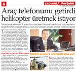 Araç telefonunu getirdi helikopter üretmek istiyor