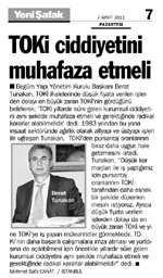 Begüm Yapı Yönetim Kurulu Başkanı Berat Tunakan, TOKİ ihalelerinde düşük fiyata verilen işlerden dolayı en büyük zararı TOKİ'nin gördüğünü belirterek; 'TOKİ yıllardır süre gelen kurumsal ciddiyetini aynı şekilde muhafaza etmeli ve gerektiğinde radikal kararlar alabilmelidir' dedi.