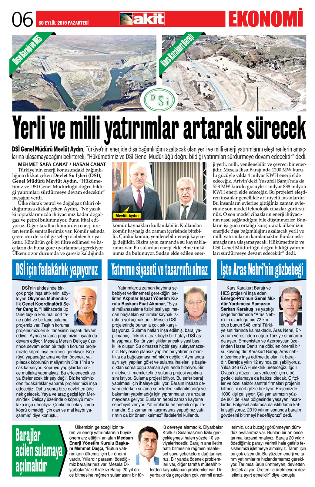 Yerli ve milli yatırımlar artarak sürecek Yeni Akit Gazetesi / 30.09.2019 DSİ Genel Müdürü Mevlüt Aydın, Türkiye'nin enerjide dışa bağımlılığını azaltacak olan yerli ve milli enerji yatırımlarını eleştirenlerin amaçlarına ulaşamayacağını belirterek, "Hükümetimiz ve DSİ Genel Müdürlüğü doğru bildiği yatırımları sürdürmeye devam edecektir" dedi. Türkiye'nin enerji konusundaki bağımlılığına dikkat çeken Devlet Su İşleri (DSİ) Genel Müdürü Mevlüt Aydın, "Hükümetimiz ve DSİ Genel Müdürlüğü doğru bildiği yatırımları sürdürmeye devam edecektir" mesajını verdi. Ülke olarak petrol ve doğalgaz fakiri olduğumuza dikkat çeken Aydın, "Ne yazık ki topraklarımızda ihtiyacımız kadar doğalgaz ve petrol bulunmuyor. Bunu ithal ediyoruz. Diğer taraftan kömürden enerji üreten termik santrallerimiz var. Kömür aslında çevre için de kirliliğe sebep olabilen bir yakıttır. Kömürün çok iyi filtre edilmesi ve bacaların da buna göre uyarlanması gerekiyor. Ülkemiz zor durumda ve çaresiz kaldığında kömür kaynakları kullanılabilir. Kullanılan kömür kaynağı da zaman içerisinde bitebilir. Çünkü kömür, yenilenebilir enerji kaynağı değildir. Bizim aynı zamanda su kaynaklarımız var. Bu sulardan enerji elde etme imkânımız da bulunuyor. Sudan elde edilen enerji yerli, milli, yenilenebilir ve çevreci bir enerjidir. Mesela Ilısu Barajı'nda 1200 MW kurulu gücüyle yılda 4 milyar KWH enerji elde edeceğiz. Artvin'deki Yusufeli Barajı'nda da 558 MW kurulu gücüyle 1 milyar 888 milyon KWH enerji elde edeceğiz. Bu projeleri eleştiren insanlar genellikle art niyetli insanlardır. Bu insanların evlerine gittiğiniz zaman evlerinde son model teknolojik cihazlar görürsünüz. O son model cihazların enerji ihtiyacının nasıl sağlandığını bile düşünmezler. Bunların işi gücü ortalığı karıştırarak ülkemizin enerjide dışa bağımlılığını azaltacak yerli ve milli yatırımlarını karalamaktır. Bunlar asla amaçlarına ulaşamayacak. Hükümetimiz ve DSİ Genel Müdürlüğü doğru bildiği yatırımları sürdürmeye devam edecektir" dedi. DSİ için fedakârlık yapıyoruz DSİ'nin uhdesinde birçok proje inşa ettiklerini söyleyen Okyanus Mühendislik Genel Koordinatörü Sefer Cengiz, "Hâlihazırda üç tane taşkın koruma, dört tane gölet ve bir tane sulama projemiz var. Taşkın koruma projelerimizden iki tanesinin inşaatı devam ediyor. Ayrıca sulama projemizin inşaatı da devam ediyor. Mesela Mersin Deliçay üzerinde devam eden bir taşkın koruma projemizde köprü inşa edilmesi gerekiyor. Köprüyü yapacağız ama verilen ödenek, yapılacak köprünün maliyetinin 3'te 1'ini ancak karşılıyor. Köprüyü yağışlardan önce mutlaka yapmalıyız. Bu ertelenecek veya ötelenecek bir şey değil. Biz kendimizden fedakârlıklar yaparak projelerimizi inşa edeceğiz. Daha sonra bize devletten ödenek gelecek. Yaya ve araç geçişi için Mersin'deki Deliçay üzerinde o köprüyü mutlaka inşa etmeliyiz. Çünkü önceki yıllarda köprü olmadığı için can ve mal kaybı yaşanmış" diye konuştu. Yatırımın siyaseti ve tasarrufu olmaz Yatırımlarda zaman kaybına sebebiyet verilmemesi gerektiğini belirten Akpınar İnşaat Yönetim Kurulu Başkanı Fuat Akpınar, "Siyasi mülahazalarla fizibilitesi yapılmadan başlatılan yatırımlar kaynak israfına yol açmaktadır. Mesela DSİ projelerinde bununla çok sık karşılaşıyoruz. Sulama hatları inşa edilmiş, baraj yapılmamış. Teknik olarak böyle bir hatayı DSİ asla yapmaz. Bu tür yanlışlıklar ancak siyasi baskı ile oluşur. Su olmazsa hiçbir şeyi sulayamazsınız. Böylesine plansız yapılan bir yatırımın mantıkla da bağdaşması mümkün değildir. Aynı anda ayrı ayrı yapılan gölet ve sulama ihaleleri iş başladıktan sonra çoğu zaman aynı anda bitmiyor. Bir milletvekili memleketine sulama projesi yapılmasını istiyor. Sulama projesi bitiyor. Bu sefer baraj yapılması için ihaleye çıkılıyor. Barajın inşaatı devam ederken sulama şebekeleri kullanılmadığı ve bakımları yapılmadığı için yıpranmalar ve arızalar meydana geliyor. Bunların hepsi zaman kaybına sebebiyet veriyor. Yatırımlarda en önemli olgu zamandır. Siz zamanını kaçırırsanız yaptığınız yatırımın da bir önemi kalmaz" ifadelerini kullandı. İşte Aras Nehri'nin gözbebeği Kars Karakurt Barajı ve HES projesini inşa eden Energo-Pro'nun Genel Müdür Yardımcısı Ramazan Serkan Karakuş ise yaptığı değerlendirmede "Aras Nehri'nin uzunluğu bin 72 km olup bunun 548 km'si Türkiye sınırlarında kalmaktadır. Aras Nehri, Erzurum yöresinden doğup Türkiye sınırlarını da aşan, Ermenistan ve Azerbaycan üzerinden Hazar Denizi'ne dökülen önemli bir su kaynağıdır. Karakurt Barajı, Aras nehri üzerinde inşa edilmekte olan ilk barajdır. Barajda yılın 12 ayında çalışabiliyoruz. Yılda 346 GWH elektrik üreteceğiz. Iğdır Ovası'na düzenli su verileceği için o bölgedeki sulamaya da katkısı olacak. Çiftçiler ve özel sektör santral firmaları projenin bitmesini dört gözle bekliyor. Projemizde 1000 kişi çalışıyor. Çalışanlarımızın yüzde 80'i de Kars bölgesinde yaşayan insanlardır. Bölgesel anlamda da istihdama katkı sağlıyoruz. 2019 yılının sonunda barajın gövdesini bitirmeyi hedefliyoruz" dedi. Barajlar acilen sulamaya açılmalıdır Ülkemizin geleceği için tarım ve enerji yatırımlarının büyük önem arz ettiğini anlatan Medsan Enerji Yönetim Kurulu Başkanı Mehmet Daşçı, "Bütün yatırımların ülkemiz için bir önemi vardır. Yıllardır parasını ödediğimiz barajlarımız var. Mesela Diyarbakır'daki Kralkızı Barajı 20 yıl önce bitmesine rağmen sulamasını bir türlü devreye alamadık. Diyarbakır Kralkızı Sulaması'nın fiziki gerçekleşmesi halen yüzde 10 seviy