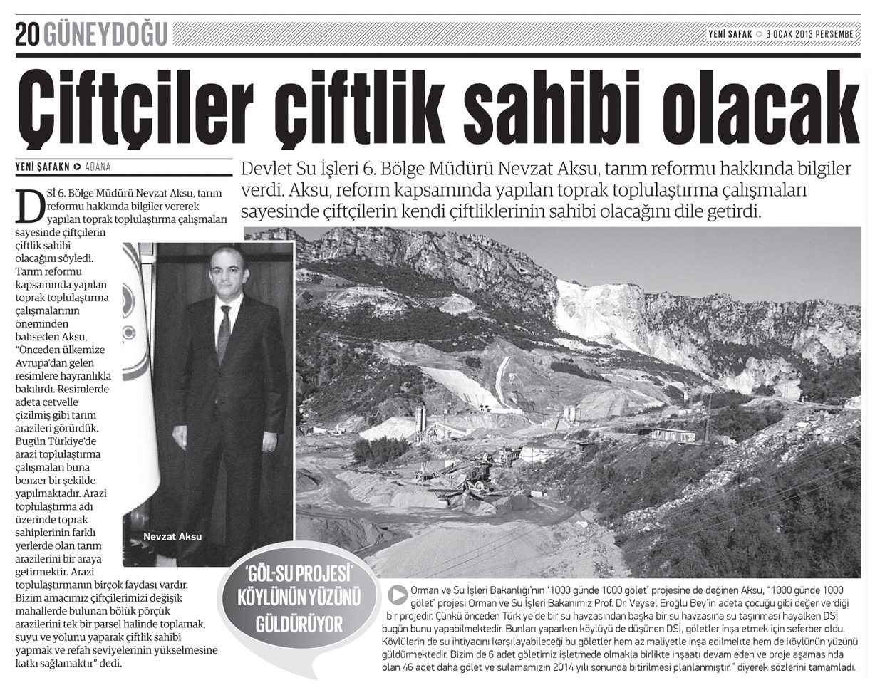 DSİ 6. Bölge Müdürü Nevzat Aksu, tarım reformu hakkında bilgiler verdi. Aksu, reform kapsamında yapılan toprak toplulaştırma çalışmaları sayesinde çiftçilerin çiftlik sahibi olacağını söyledi.