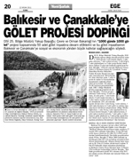 Balıkesir ve Çanakkale'ye GÖLET PROJESİ DOPİNGİ